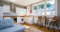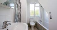 The property is accessed on the raised ground floor via its own private entrance into a smart hallway. Immediately to the left is the first bedroom, it is a lovely bright room with a westerly aspect. Beyond this is the second bedroom a terrifically bright room with a large window benefitting from a lovely green vista. The ground floor accommodation is completed by the large contemporary bathroom with a classic white suite.