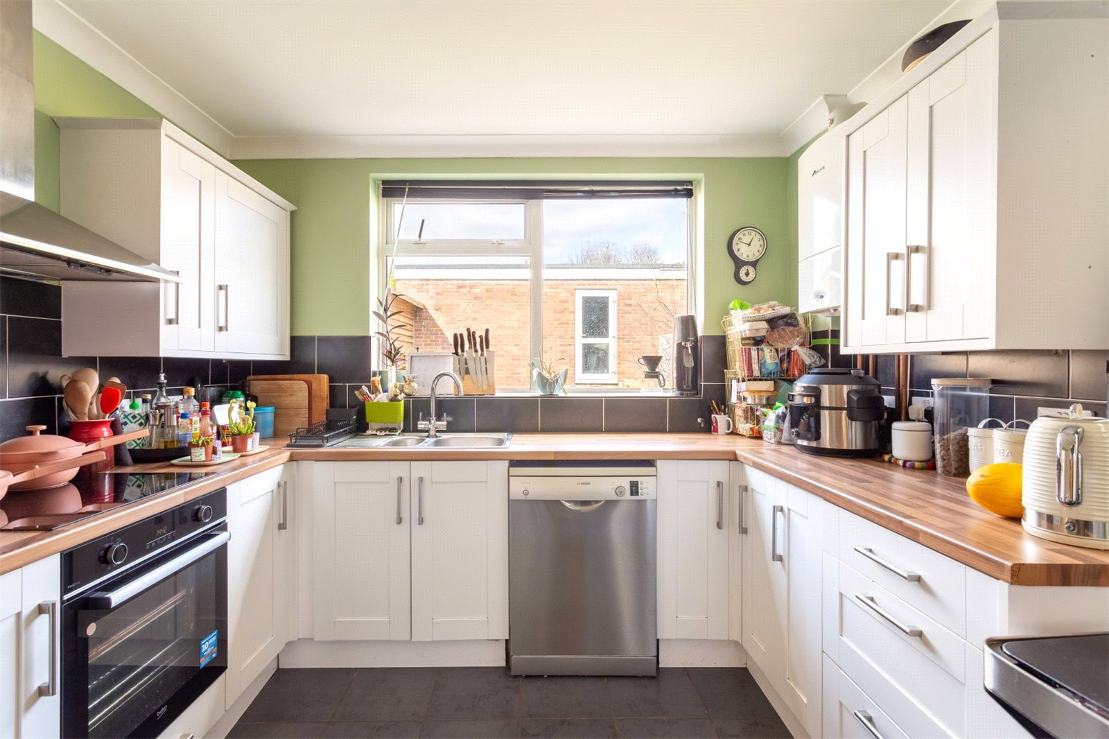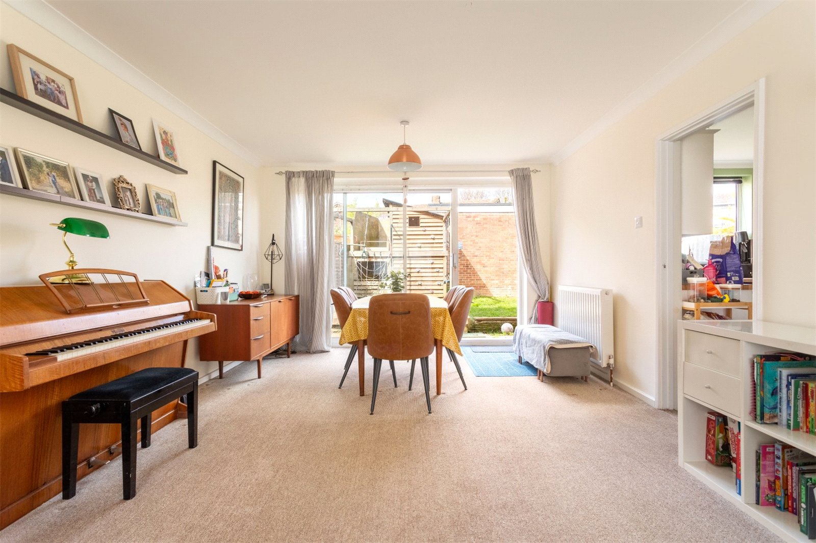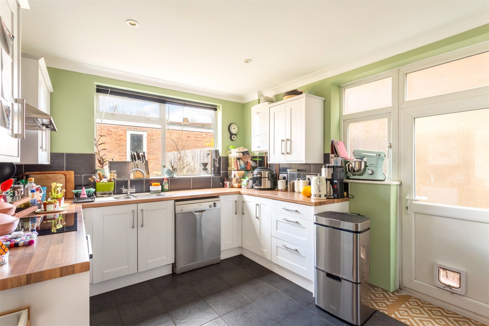 The property is beautifully presented throughout and offers comfortable family living across two floors. The property benefits from double glazing throughout, which contributes to the impressive C energy rating on the EPC. Set back from the road, there is good size front garden owners make use of raised beds and enjoy a mixture of flowers and homegrown vegetables. You enter the property to a wide entrance hallway with plenty of space for storing the families’ coats and shoes. From here you enter a spacious through lounge diner, befitting from dual aspect light adorns this room throughout the day. From this room you can access the rear garden as well as the kitchen. The kitchen itself has white shaker unit door fronts, and a wood effect work top. There is plenty of work top space, an integrated cooker and hob, plumbing for dishwasher and washing machine. The combination boiler is also located here.