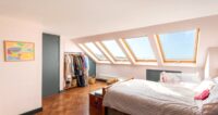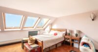 Occupying the entire second floor is a large principal bedroom. This is an impressive space which enjoys spectacular views of the city. There is also an en-suite shower room, beautifully finished with teal Herringbone tiles and once again enhanced by gold accents, giving the space a luxurious feel.