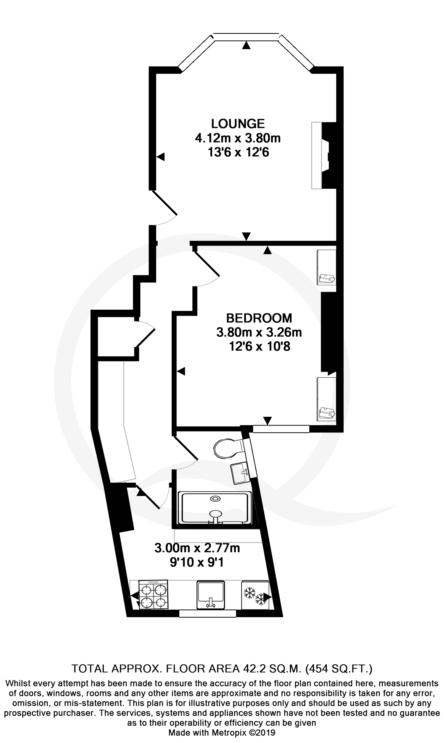 There is a clever use of space in all rooms and plenty of useful storage. The bright bay fronted lounge has a feature fireplace and grey tones to the walls and new carpet. The bedroom has wardrobes provided, and plenty of space for a large double bed.