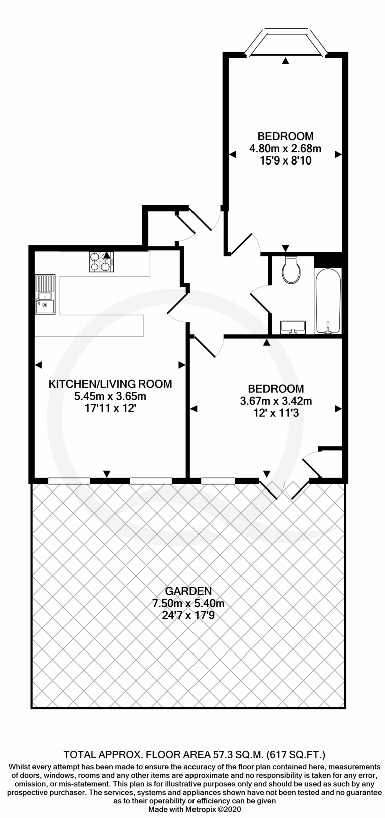 A spacious and well presented two double bedroom garden flat , this property has two good size double bedrooms with laminate flooring and neutral décor throughout. The kitchen and lounge are open plan and look out over the west facing rear patio garden which is a very generous size and has views back across the valley towards the station. The bathroom is of modern style with shower over bath.