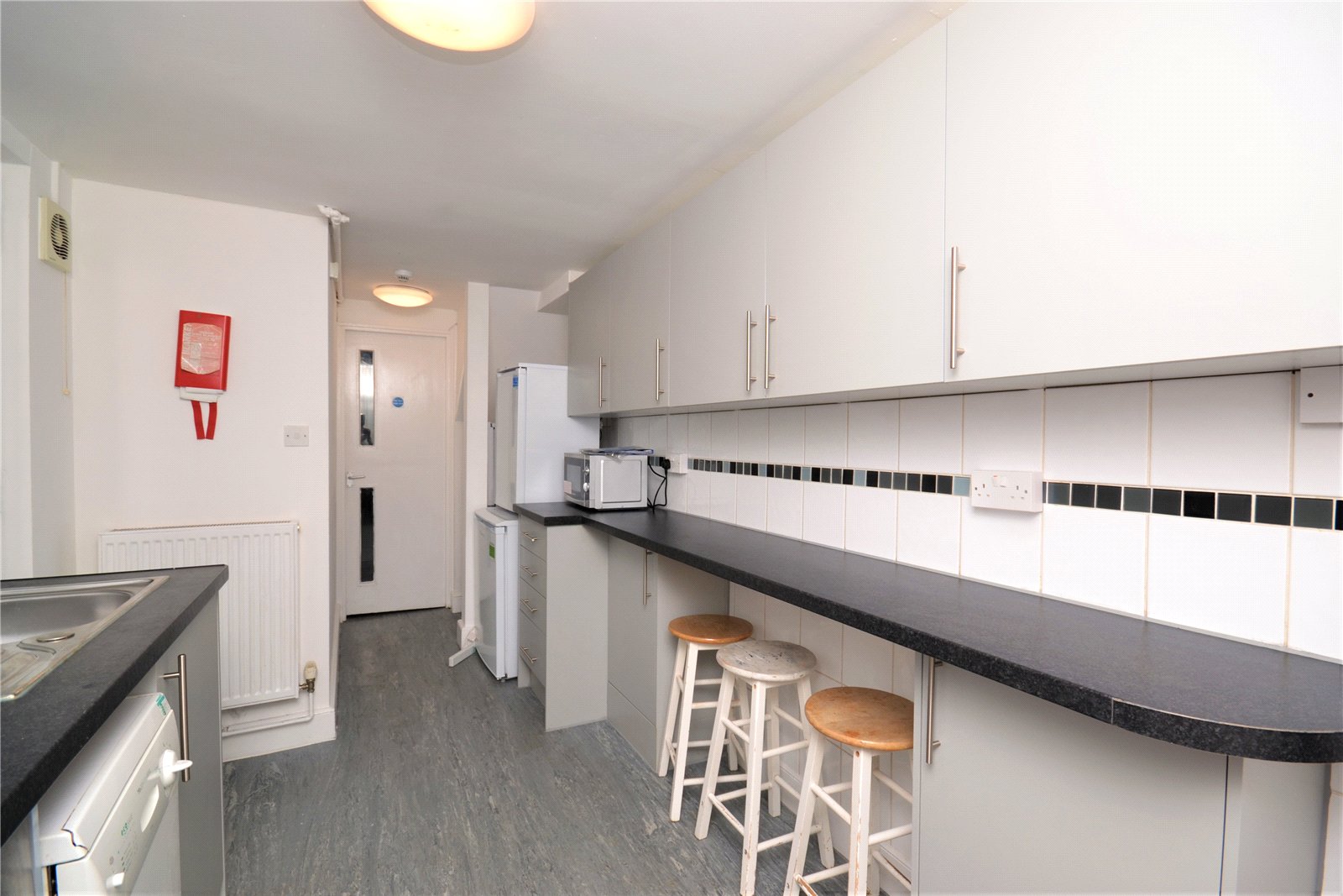On the ground floor there is a fitted kitchen with breakfast bar and dining space, along with a separate lounge providing a comfortable communal area. The house also benefits from a bathroom and an additional shower room, helping to make the layout practical for multiple occupants.