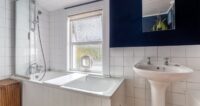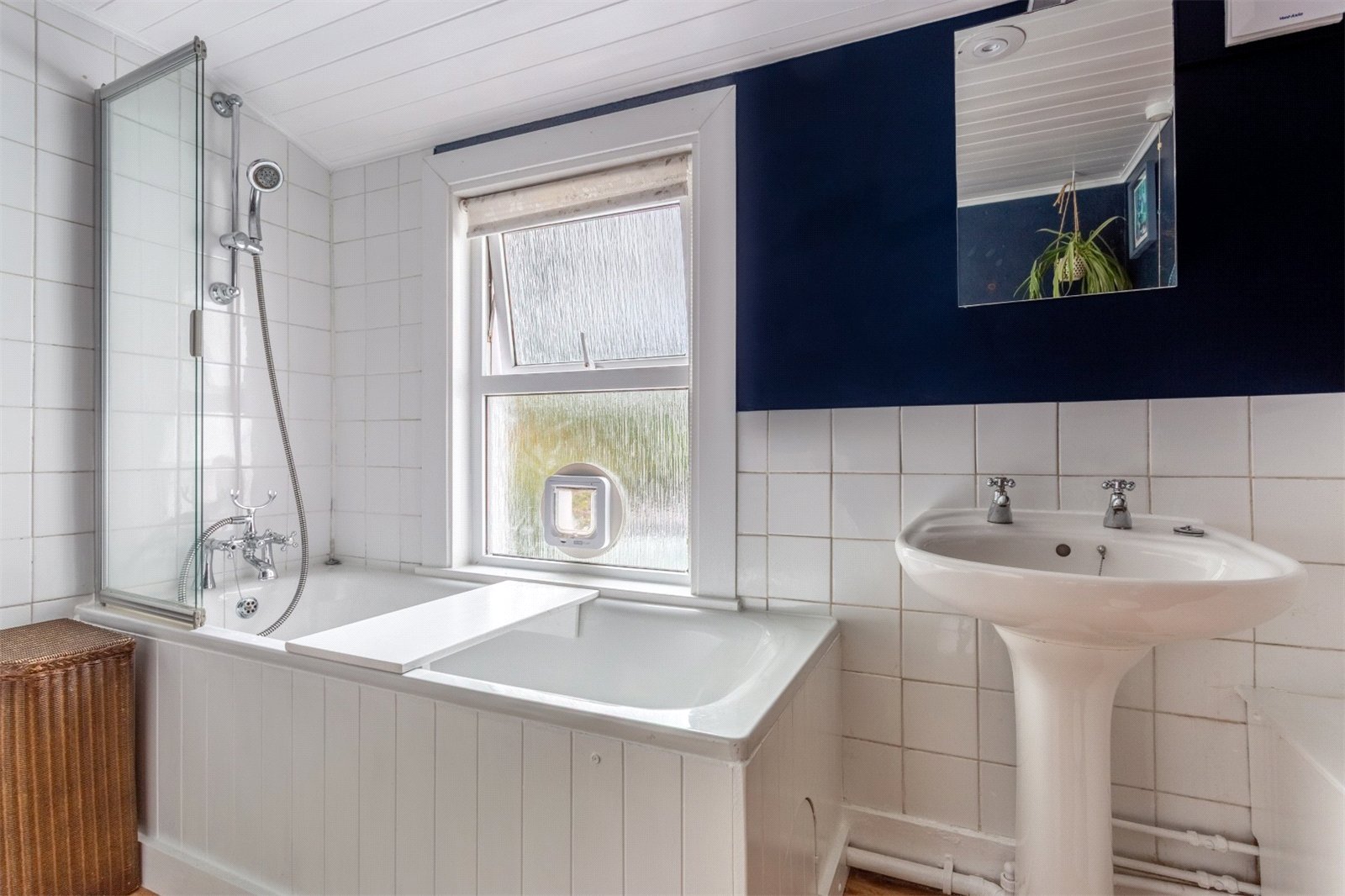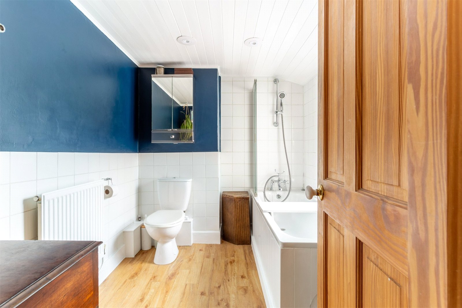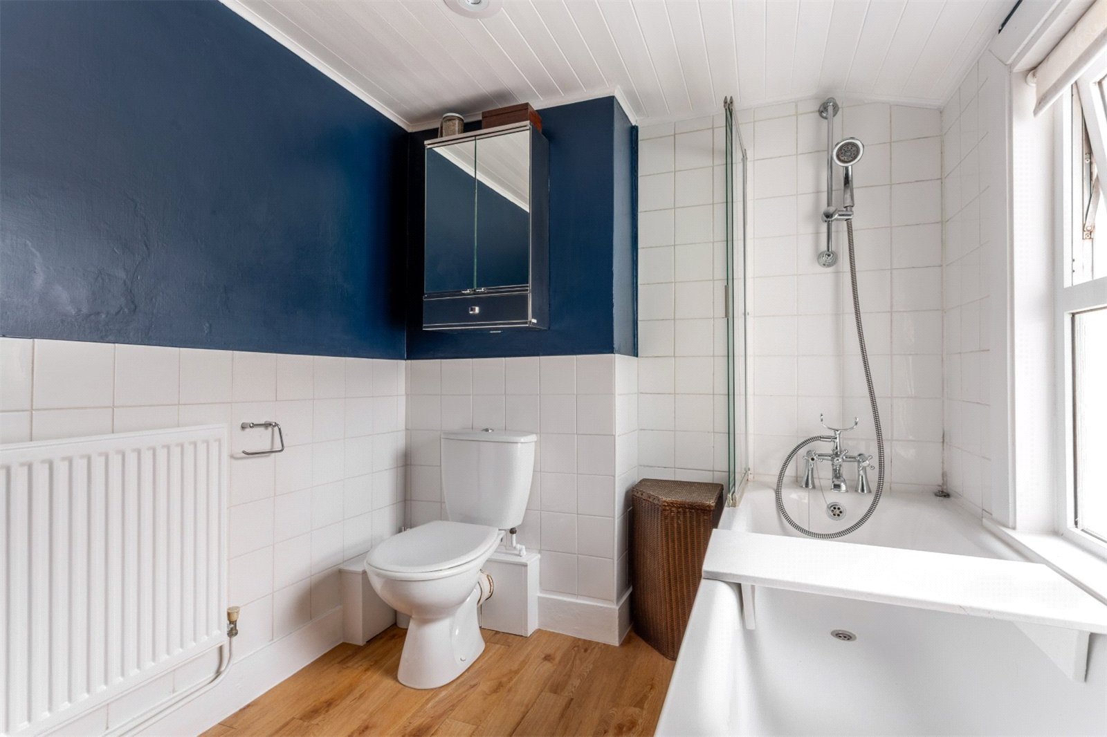 On the first floor, you will find two well proportioned bedrooms, one of which spans the width of the building and a family bathroom featuring a shower over the bath and a white suite with wash basin and WC.