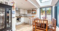 The ground floor features stylish wooden flooring throughout and comprises a generous reception with feature fireplace and bay fronted windows, flowing nicely into an eat-in kitchen with contemporary cabinetry and modern appliances. This opens out onto a good-sized patio garden, perfect for entertaining guests in the warmer summer months.