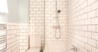 Shaker style units match wooden worktops to offer a classic look, while the bras handles and metro tiles ensure a contemporary finish. Back off the hallway is the bedroom, a well-sized double which once again offers classical styling in abundance. The accommodation is completed by the bathroom where a white suite of panel bath with rainfall shower over, wash basin and w/c is matched with metro-style wall tiles and an engineered floor.