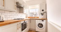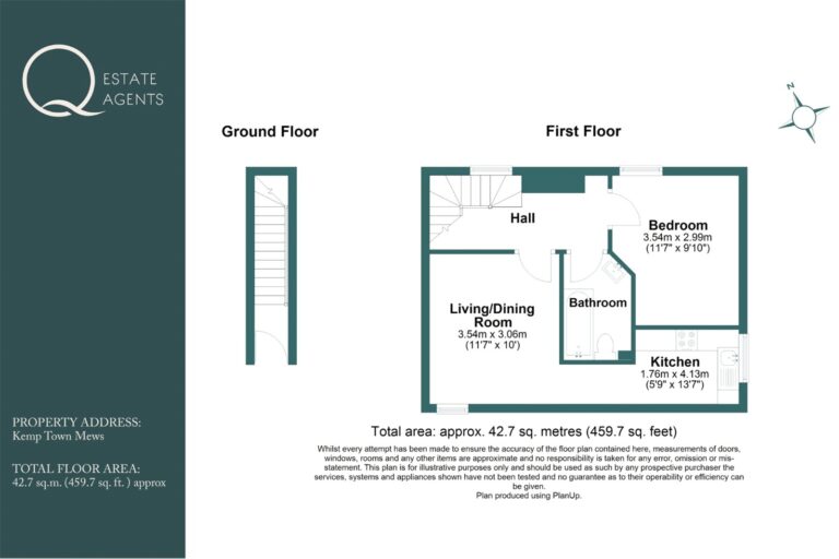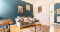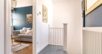 The flat itself is a beautifully finished one bedroom apartment offering contemporary living across the first floor. Stairs rise from the entrance leading to the hallway where a large window fills the space with light. To the front is the main living room, smartly finished with a dark teal feature wall and wood-style flooring. The social living space opens to the kitchen which has been stylishly finished.