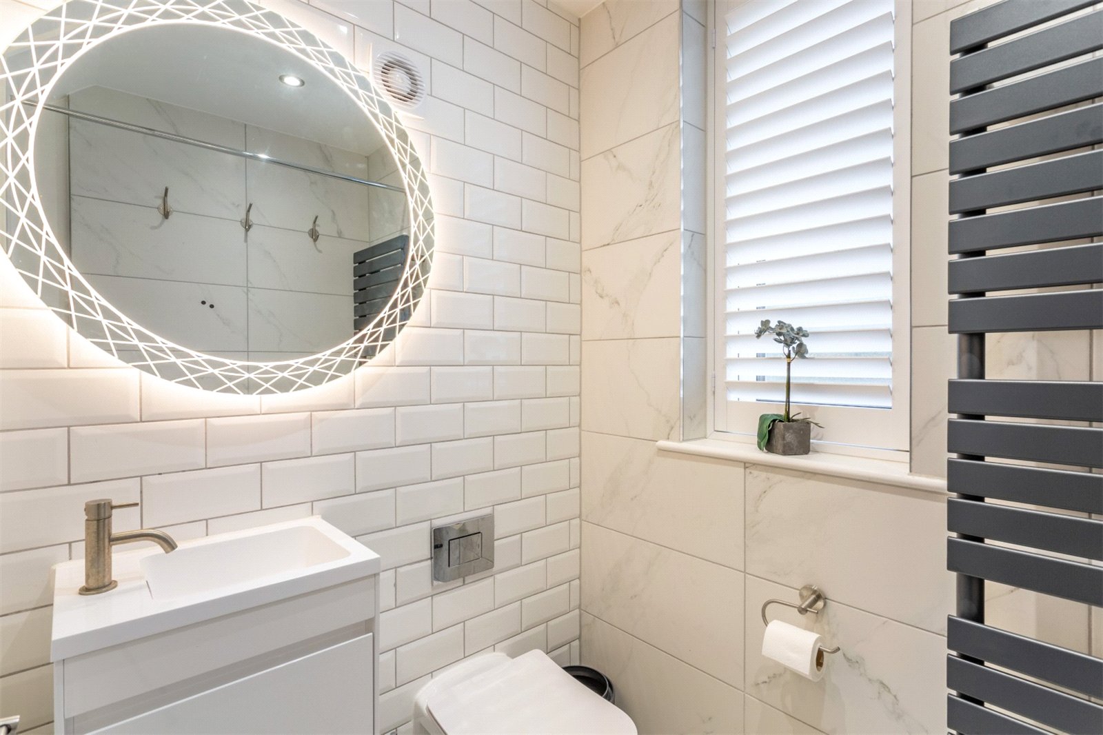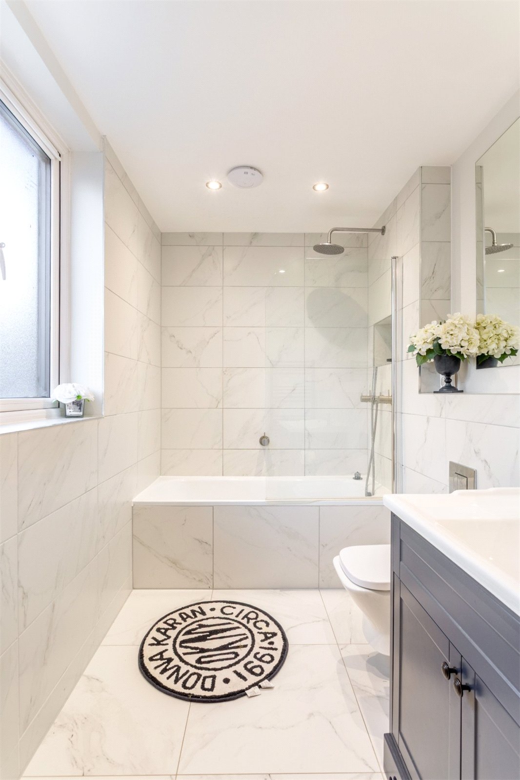 On the first floor, there are two generously sized double bedrooms, both with the added benefit of built in storage. The larger of the two also benefits from an en-suite shower room. This level also includes a luxury family bathroom featuring beautiful marble tiles, vanity unit and a rainfall effect overhead shower above the bath.