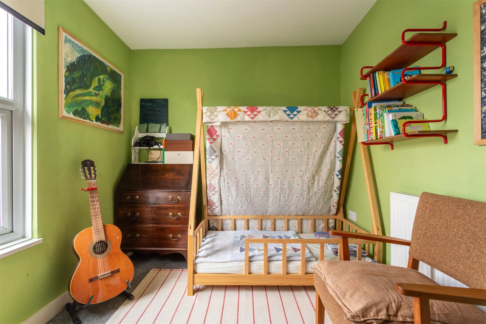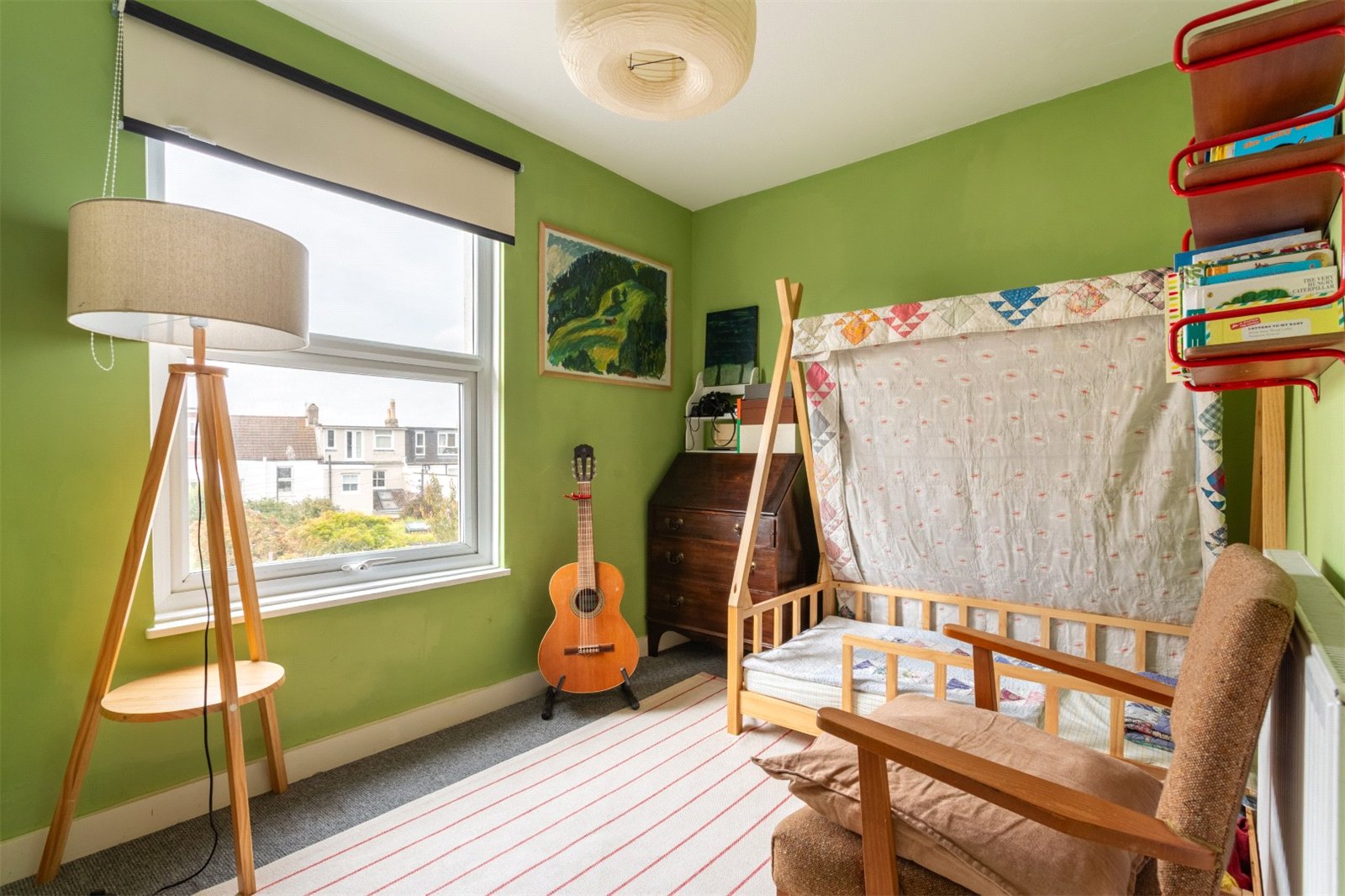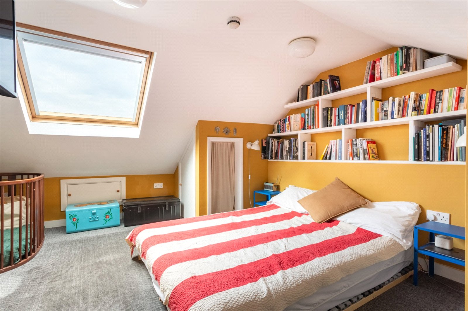 The third floor hosts a good-sized principal bedroom featuring a Velux window that floods the space with natural light.