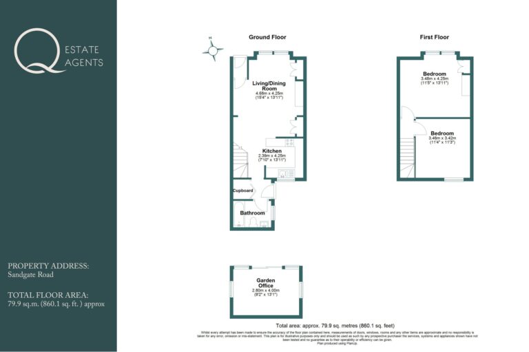 Floor Area: 79.9msq (including the garden room) (approx.)