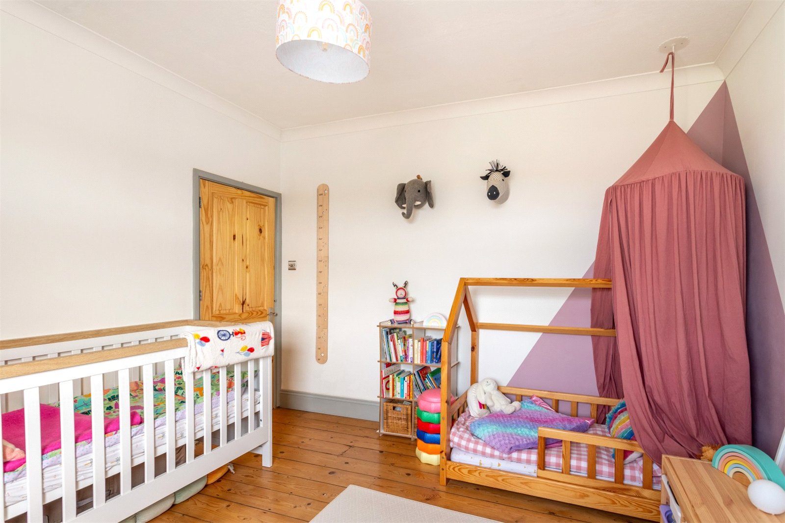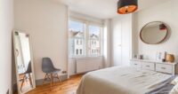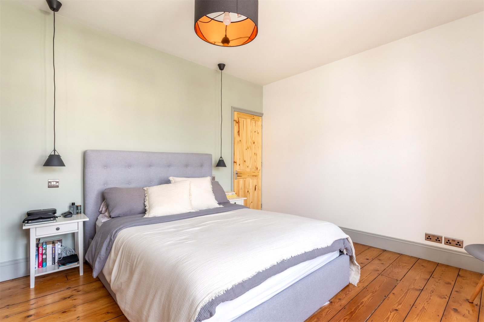 The first floor is occupied by two large double bedrooms. The principle bedroom overlooks the front of the property. Sharp decoration with subtle colour tones compliments the stripped wooden flooring. Again, there is fitted storage in this room as well as ceiling mounted bed side lamps. The rear bedroom is recently decorated with stripped wooden flooring and double glazing. The current owners use this room as a child’s room, but there is plenty of space for a double bed and wardrobe if desired.