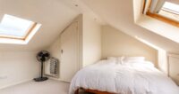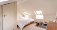 From the landing, a staircase leads up to the third floor where there is another double bedroom with Velux windows, eaves storage and built in downlighters.