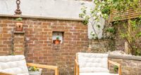 Outside is a charming walled and fenced patio paved patio garden, with brick built raised flower & shrub borders; an ideal space for entertaining or just sitting with a book and glass of wine.