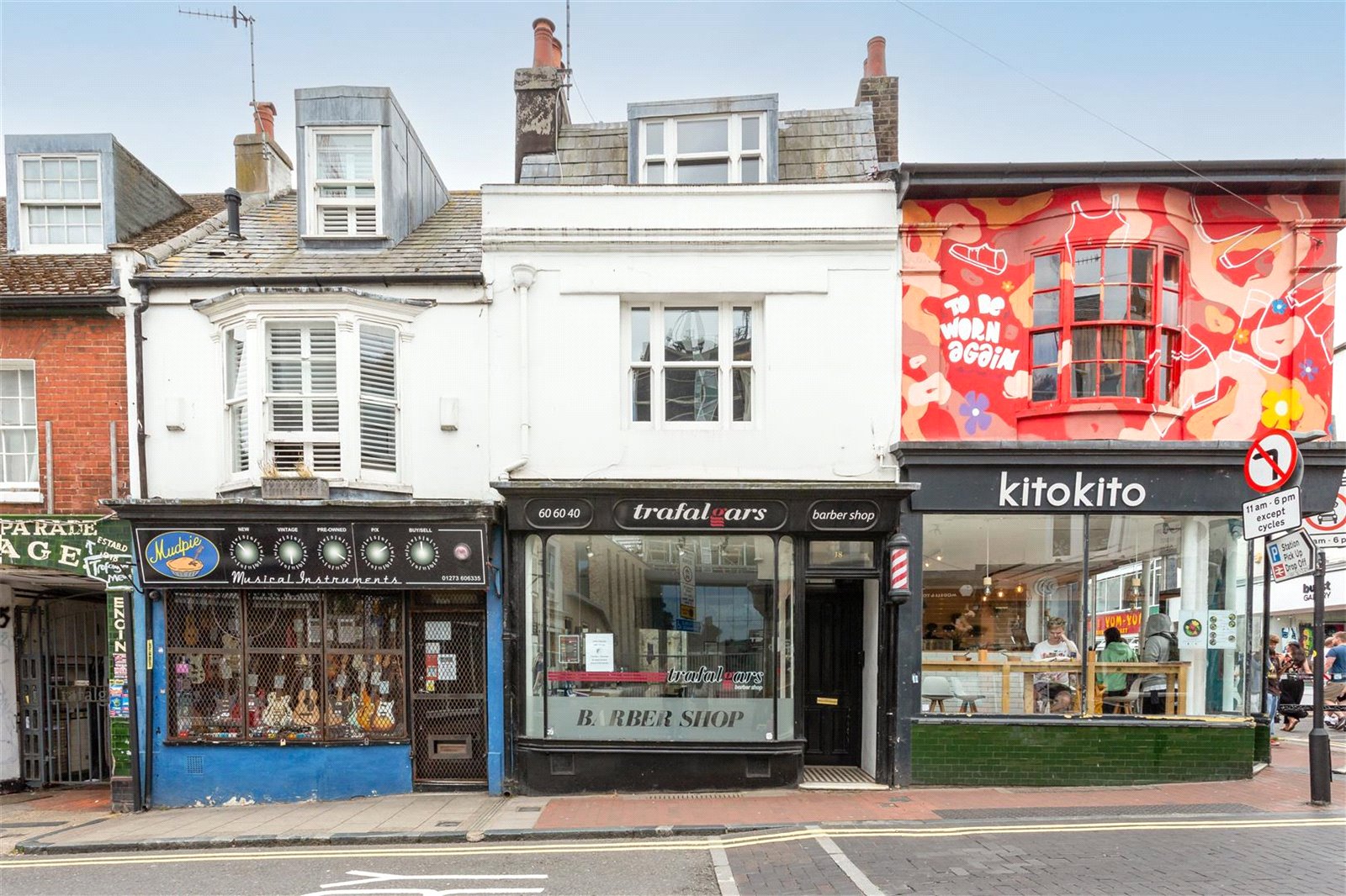 This characterful, two-bedroom maisonette, is above a barber shop at the eastern end of Trafalgar Street. You will be living in the heart of the quintessentially Brighton, North Laine district. If you fancy a meander along the road to pick up some second-hand vinyl, maybe a piece of mid-century furniture for your new pad, a poke bowl from the café on the corner, or a vegan Sunday lunch from the Prince George, then this is where you need to be. There are shops, restaurants, pubs and cafés, too numerous to mention, as well as Brighton Museum and Art Gallery, the Jubilee Library, and The Theatre Royal all on your doorstep. You can walk to the seafront in around fifteen minutes and Brighton Station is at the end of the road.